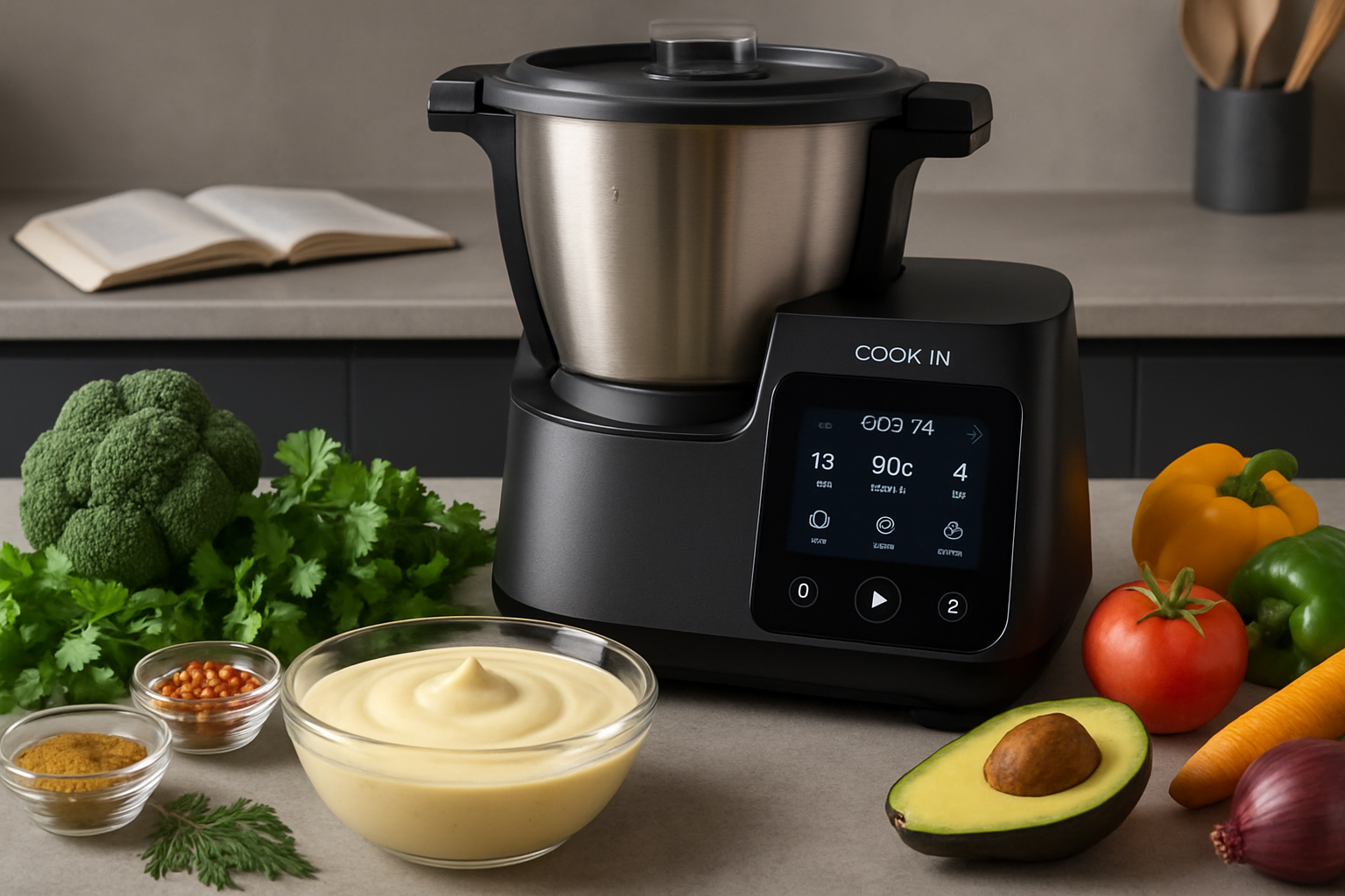 Le Cook’in est un outil polyvalent qui simplifie la préparation des sauces émulsionnées. Grâce à ses fonctions de mélange et de chauffe, il permet de contrôler précisément la température et la vitesse de mélange, garantissant ainsi une émulsion stable et homogène. De plus, il réduit le temps de préparation et le risque d’erreurs, vous permettant de vous concentrer sur la création de saveurs exceptionnelles.